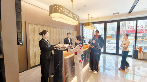 酒店工作人员热情接待游客。