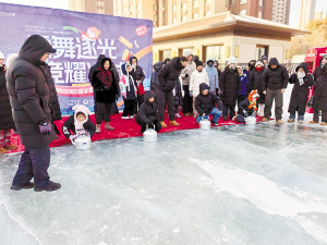 本报讯(记者 刘述波 文/摄)打冰壶、滚雪圈、冰上自行车、雪地接力赛……16日、17日时值周末,在松北区华远·水木清华与华耀·龙湾园著小区内,欢呼声、笑语声穿透寒风。由华瑞物业举办的第四届冰雪嘉年华在精心打造的小区冰场上欢乐启幕,再次为业主们解锁了家门口的冰雪乐趣。