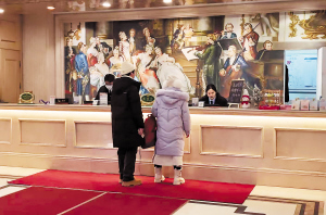 记者在该酒店内看到,工作人员正在为办理入住的客人送上伴手礼。“我们想让每一位游客在冰城都能享受到家的温暖与贴心。”马经理称,酒店为带孩子的客人配备了床边护栏,为爱拍照的客人更新了欧式打卡服装、冰雪主题打卡点,为忘记做保暖防护的客人免费提供手套、帽子、暖贴等。同时,也会在退房时间、免费早餐等方面做出人性化的弹性调整,让客人有宾至如归的体验。“前段时间有个游客带着俩孩子来入住,但每间房只提供两份免费早餐,咱不能让孩子饿肚子,我们为该游客多提供了一份免费早餐。”