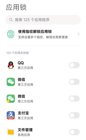 答疑解惑 相信大家的手机上都有很重要的手机应用,比如微信,或者支付宝。若不想被家中小孩或他人打开这些应用,该怎样设置呢? 手机中有一个“应用锁”功能,可以给某个应用设置密码。设置后,想要打开该应用,需要输入密码才行。 打开手机“设置”页面,依次点击“安全”“应用锁”按钮。点击页面下方的“开启”按钮,根据提示完成密码设置。 此时,“应用锁”功能已开启。但设置还没有结束。在页面中,大家会看到一个应用列表,点击其中需要锁定加密应用右侧的按钮,即可完成设置。□简单