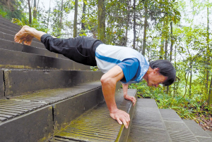 1月8日14时多,在重庆沙坪坝歌乐山国家森林公园的石阶上,一个身影正轻巧地跃上四级台阶。他叫邹和平,71岁,最近因“满头黑发、6块腹肌,一分钟做68个俯卧撑”的年轻态登上热搜。