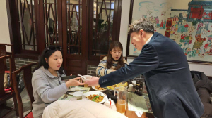 餐厅里,食客们捧着腊八粥感受着节日氛围,更有韩国游客被这一传统习俗吸引,在店员指导下学会了中文“腊八粥”的发音,举起盛满热粥的碗打卡拍照,第一时间分享给韩国友人,言语间满是欣喜。