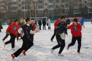 “学校橄榄球队建队初期,核心困难集中在认知与招募、场地装备、气候与时间等方面。”东北林业大学体育部刘剑宇老师回忆说,2017年,体育部的老师结合东北地区气候条件,开启了冰雪特色赛道。“漫长冬季与优质雪场,天然适配雪地橄榄球,形成差异化优势。”刘剑宇说,经过日复一日的训练,队员耐寒、抗冻、耐力好,在低温赛事中更易稳定发挥,训练中可打磨严寒环境下的战术与体能。此外,东北地域“重团结、讲拼搏”的文化氛围,与橄榄球“团结、纪律、尊重”价值观高度匹配,利于队伍凝聚。