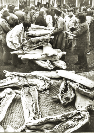 20世纪70年代末,哈尔滨的年货采购离不开肉票、蛋票、鱼票、糖票、布票等票证,腊月十五一过,各国营副食店便贴出春节特供公告,市民们揣着积攒的票证,开始了年货采购之旅。北三商店、秋林公司、“一副食”、道里菜市场、“大白楼”、南岗荣市市场……是当时主要的年货聚集地,每天凌晨四五点钟,零下二三十摄氏度的街头就排起了队,市民裹着厚棉袄、戴着翻毛帽子、系着围脖,手上套着棉手闷子,只为买到定量的猪肉、鸡蛋和鱼。