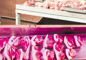 近期,记者走访广西南宁的多家商超发现,生鲜肉类柜台一般使用冷白光灯具照明,售卖的肉类颜色真实自然,与自然光照对比无明显色差。