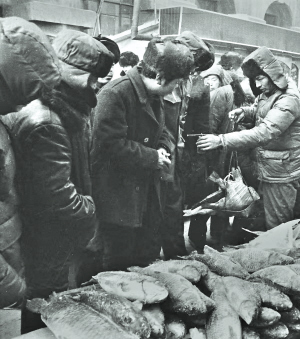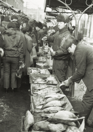 如今的超市里,商品琳琅满目,水产区鲜活的鱼虾更是品类丰富。但在几十年前的哈尔滨,由于冬季天寒地冻,刚捕上岸的鱼,很快就会冻得硬邦邦。因此,人们在冬季基本只能买到冻鱼(图一、图二)。直到上世纪八十年代末、九十年代初,随着储运条件的改善,以及经营场所硬件的升级,冬季市场上售卖的活鱼才越来越常见(图三)。从这件生活小事中,便能清晰看到时代发展给百姓物质生活带来的喜人变化。□郑学清 文/摄