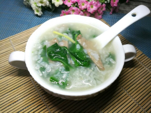 制作方法:先用粳米100克煮粥,米熟后加入切碎洗净的枸杞菜100克、羊肾50克,最后少加葱白、食盐等调味,小火煮熟即可。