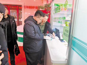 李胜宏(右二)在检查社区卫生中心的药品需求登记情况。 本报讯(记者 徐日明)为深入推进基层医疗保障服务提质增效,精准掌握基层医疗机构服务保障工作落实情况,1月30日,哈尔滨市医疗保障局党组书记、局长李胜宏带领医药处、价采处、协议部赴群力家园社区卫生服务中心开展专题调研,道里区卫健局副局长刘芳陪同。