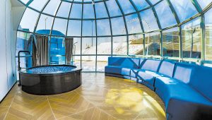 冰雪房车营地推出双人套餐、家庭套餐、星空套餐、寒地温泉套餐等多种房型。其中,星空休息室设有独立桑拿房,抬头可赏浪漫星空与雪花摩天轮;寒地温泉休息室配备私享室外温泉池,游客可一边泡温泉,一边欣赏冰雕雪琢的美景,尽享冰雪与温暖的双重治愈。