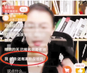 一名主播在推销高阶段付费培训班。