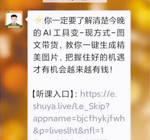 “那人特别热情,说课上讲的都是干货,由打造过上千个收益过万账号的金牌老师主讲,而且零基础就能学,每天学半小时就能赚钱。”杨女士说,连续3天的免费直播课上,“老师”除了反复强调“AI是国家重大战略”,就是不断展示学员成果——几十万粉丝的账号、动辄上万的收益截图,一步步勾起了她的兴趣。