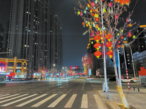 本报讯(崔彦 记者 黄晏君 文/摄)为迎春节,哈市城管等部门精心布置,以“欢度春节”为主题点亮城市夜景。璀璨的灯光秀、缤纷的灯饰将装点城市夜空,陪伴市民游客共庆新春。除夕夜,冰城主要街路景观灯饰亮化将持续到第二天早6时。