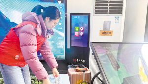 志愿者在整理游客寄存的行李。 □本报记者 杜菲菲 文/摄