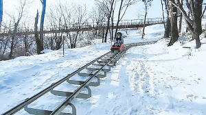 “滑道有48个弯道和2处隧道,升级后还增加了多重安全防护,全程有安全员巡逻。”工作人员指着滑道的弯道处说。