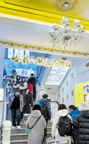 本报讯(记者 王坤 文/摄)尽管春节长假结束,哈药六版画博物馆门前依然游人如织。这座工业遗产转型地标,凭借其独特的艺术魅力与沉浸式体验,持续吸引着大量错峰出游的游客前来感受版画艺术,并在宏伟的欧式建筑前留下纪念。