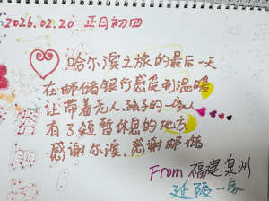 在银行的留言册上,游客写满感激的话:“在哈尔滨体会到了无微不至的关怀”“这座城市太暖心”……
