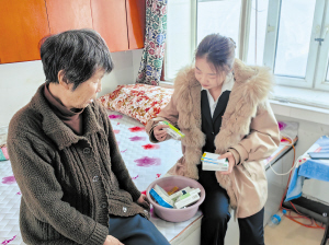 于洋看望刘大娘,叮嘱她按时服药。