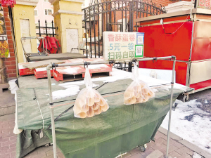 与小丹的初次尝试不同,哈尔滨道里区安居市场附近一地铁口区域,一个无人值守的香酥蛋卷小摊运营4年了。