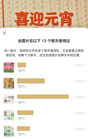 同学聚会拍了很多照片,在微信中发来发去,记不清发了谁、没发谁,怎么办? 打开微信,在一个好友聊天页面中找到相应图片,点击后长按图片,点击“查看包含该图片的聊天”按钮,就能显示发送过的好友和群聊。 点击相应的好友聊天,还能看到和好友聊了些什么。据《人民日报》
