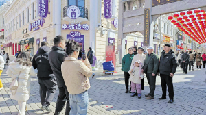 本报讯(记者 李佳琪 文/摄)近日,记者在道外区中华巴洛克历史文化街区看到,趁着宜人春光,大批市民与游客走进街区,拍照打卡、品尝美食、选购文创,街区充满着烟火气息与青春活力。