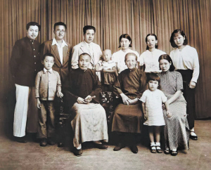 ▲1935年,老道外人刘振江(前排左二)六十寿辰与家人在三友照相馆合影。刘乃翘提供