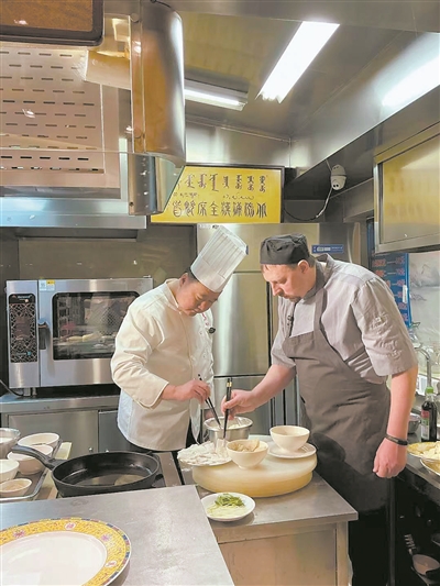 本报讯(张克华 记者 张大星)近日,在哈尔滨金春大酒店的后厨,上演一场特别的“教学”。学生是来自俄罗斯一家餐厅的行政主厨安娜多利·阿列可桑得罗维奇,老师则是全国劳动模范、中国饭店协会副会长、省餐饮烹饪行业协会会长张金春。他们共同聚焦的,是一道让许多俄罗斯游客念念不忘的东北名菜——锅包肉。