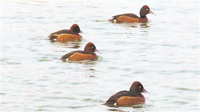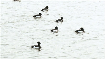 3月22日,野鸭湾,在一群熟悉的绿头鸭群落中,一群外貌奇特的鸭子让吴戟迅速聚焦——“当时一共看到5只,聚在一起。它们在水面游的时候,身体沉入水下的部分比较多,就像潜水艇似的,我当时认出来,这肯定是潜鸭。”