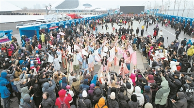 2026哈尔滨开江文化周启动仪式上的歌舞表演。