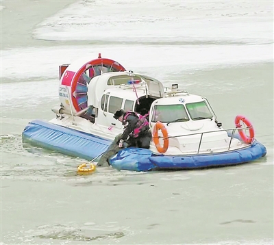 岸边,多名民警正试图用救生圈套住小狗,可距离太远,怎么也够不着。一名民警一边盯着冰面上的动静,一边紧急打电话请求支援。董女士隐约听见民警是在电话里和动物救助部门沟通。不一会儿,一艘气垫船破冰而来。数分钟后,船上的民警稳稳地将瑟瑟发抖的小狗从冰水中托起,带回岸边。从小狗落水到获救,全程约15分钟。