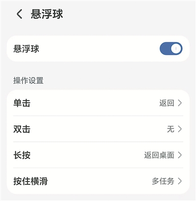 在页面中找到并点击“悬浮球(原悬浮导航)”按钮后,将悬浮球选项右侧的开关关闭即可。□简单