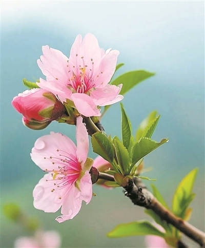 如果是午后,仰拍的桃花花瓣会呈现出半透明的质感,像被阳光镀上了一层柔光;如果是清晨,薄雾未散,蓝天带着淡淡的灰调,花枝在雾中若隐若现,更添朦胧之美。