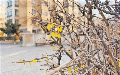 眼下,哈市街头绿地的树木仍未抽芽、小草依旧枯黄,绽放的连翘成为冰城最动人的早春景致。