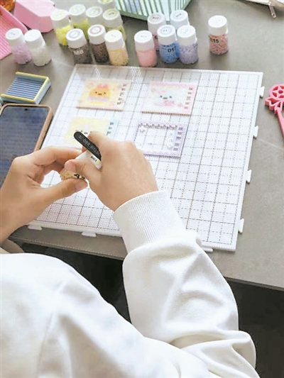 除了长辈,年轻人也是拼豆店的主力军。平时很少做手工的大学生小杨,为了给女友准备生日惊喜,花了一个下午在店里对着图纸死磕“蜡笔小新”。“豆子很小,镊子一抖就歪,挺考验耐心的。”小杨表示,正是这种费时费力的笨功夫,才更能凸显心意。