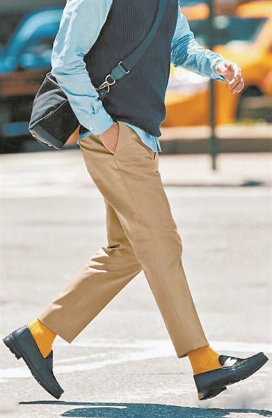 避免裤腿堆积,卷裤腿拉长比例:很多中老年男性容易忽视一个问题,裤腿长度盖过鞋面,自以为不影响整体造型,实际上不仅显得腿短,还会给人一种拖沓、油腻感。正确的穿法应该是裤腿不能盖过鞋面,如果裤子过长,可以采用卷裤腿的方式,强调脚踝与下半身的利落感,整体比例看着显高,人也更有精神。