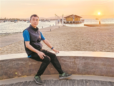 倪叔在秘鲁的帕拉卡斯海滨留影。