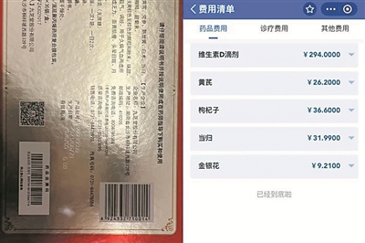 当记者询问临期药品的药效时,店员竟称:“中药不像西药,过期没关系。”记者刷医保卡后发现,结算明细被替换为维生素D滴剂、黄芪、金银花等药品,并非实际购买的驴胶补血颗粒。