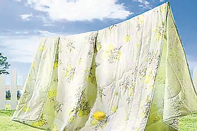 晾晒被子时,可在表面覆盖一层旧床单,以防止面料晒黄褪色、阻挡灰尘、花粉二次污染;将贴身的一面朝向阳光,杀菌除螨更彻底,同时保护被面。羊毛被、羽绒被切忌暴晒,在通风处晾1小时即可,避免面料纤维受损。