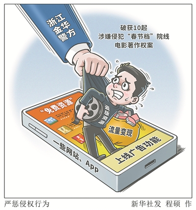 按照公安部指挥部署,浙江省金华市公安局近期破获了10起涉嫌侵犯“春节档”院线电影著作权案,抓获犯罪嫌疑人20人,下架侵权作品80万余部。其中数额最大的一起是“某影”App案,非法经营额高达500余万元。