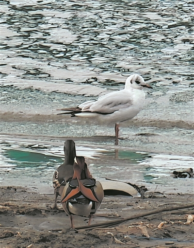 春日的松花江畔,正上演着一场热闹非凡的“鸟类联欢会”。4月27日中午,在哈尔滨九站公园的江边,成群的江鸥舒展着白羽在碧波上掠飞,羽毛斑斓的鸳鸯成双成对地悠游,憨态可掬的绿头鸭和斑嘴鸭排着队“晒太阳”,大喜鹊蹦跳着在岸边“凑热闹”……不同种类、大小各异的鸟儿们打破“种族壁垒”,混在一起嬉戏、觅食,构成了一幅灵动和谐的春日画卷。