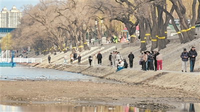 这番生机勃勃的景象,吸引了众多市民游客驻足。人们或举着手机相机记录,或带着孩子指认鸟儿的种类,更有不少“老哈尔滨”熟门熟路地从包里掏出小米、面包屑,轻轻撒在岸边安全的空地上。鸟儿们也不怕生,见到食物便欢快地聚拢过来。很多外地游客看着这些羽毛光亮、体态丰腴的鸟儿,十分羡慕:“这些鸟儿胖嘟嘟的,‘东北娃娃’一看就是伙食好!真的很羡慕哈尔滨人,生活在这么好的环境里!”